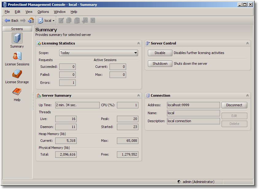 Protection! Licensing Server Management Console